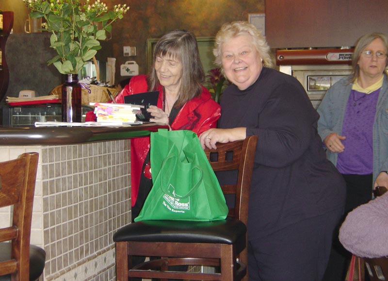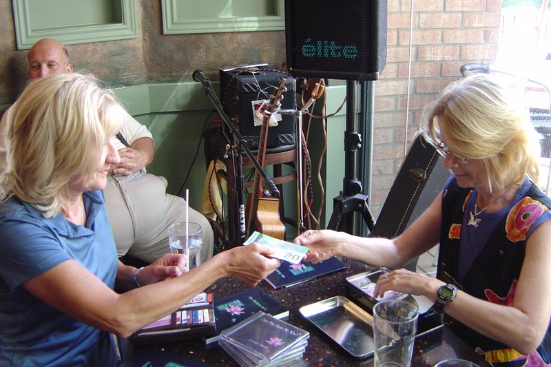 Linda signs a book for Pam